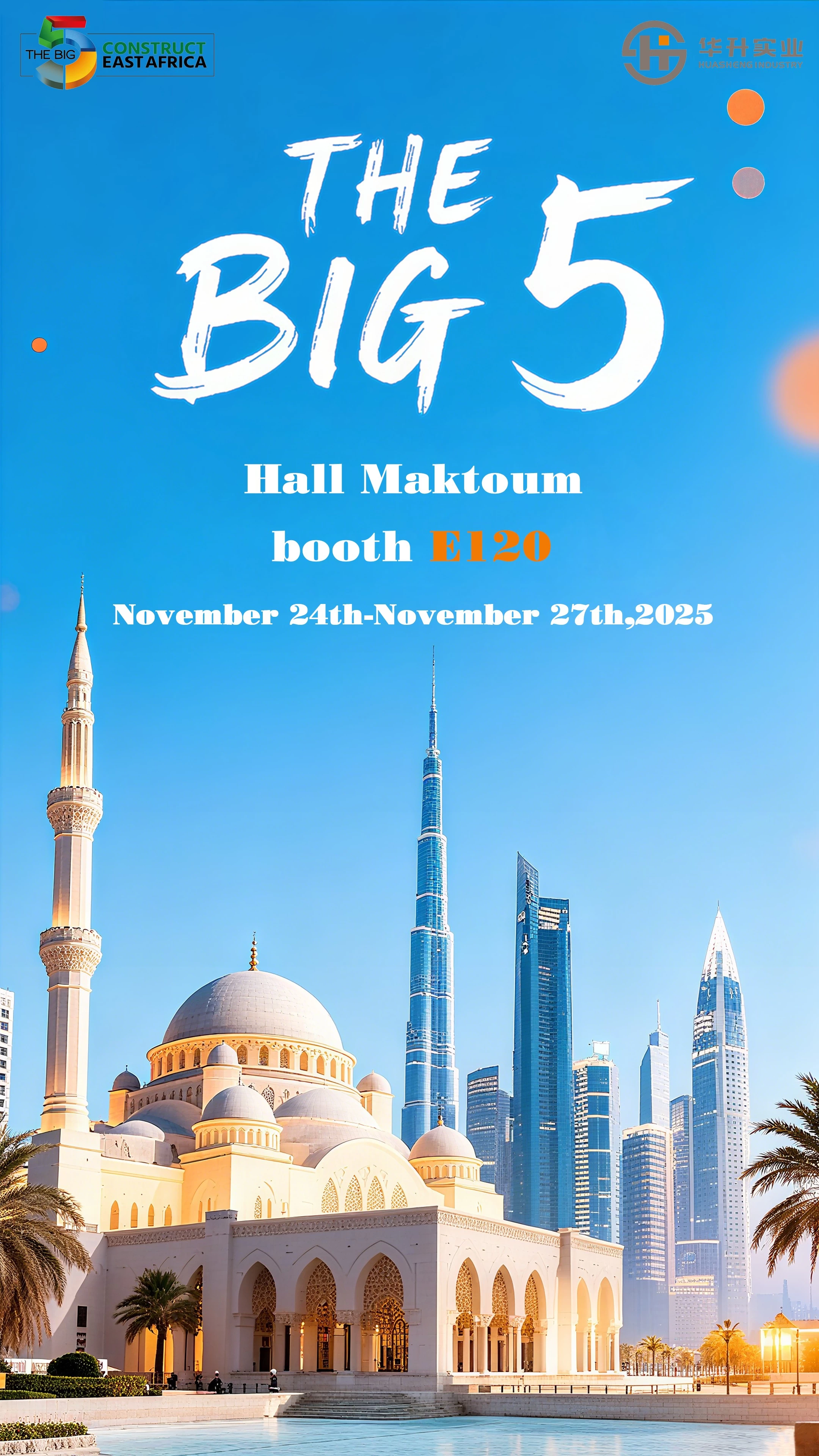 Heze Huasheng Industry is pleased to announce its participation in The Big 5 Dubai, the Middle East's premier construction event. Visit us at Booth E120, Hall Maktoun from November 24-27, 2025.